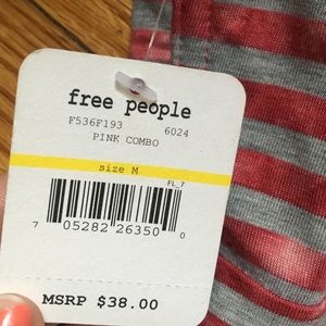 Free people crop top, brand new with tags. Sort of a maroon/pink color with gray stripes. Size medium.