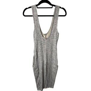 This stylish one-piece jumpsuit from Free People is perfect for any occasion, whether you're traveling, working out, or just running errands. The jumpsuit comes in a beautiful heather gray color and is made from a lightweight and stretchy knit fabric, which makes it comfortable and easy to wear. The jumpsuit has a scoop neckline, sleeveless design, and a straight leg style, with a 18-inch inseam. The jumpsuit also features a pull-on closure, pockets, and is machine washable, making it easy to care for. The set includes activewear, and the jumpsuit is perfect for summer, fall, and spring. The jumpsuit is made from a combination of spandex, viscose, and cotton, and is perfect for women's size XS. The jumpsuit is not handmade and is not vintage.