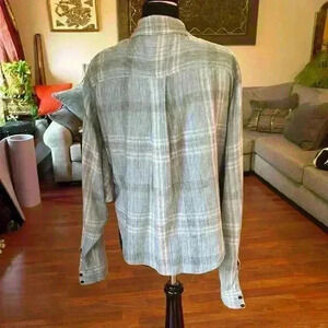 This plaid shirt is a classic wardrobe staple suitable for any occasion. Made by Free People, this shirt is tailored to fit women with a standard size. Its batwing design gives it a unique look, and the buttons give it an elegant touch. The shirt's gray color gives it a cool tone that matches well with any other color.