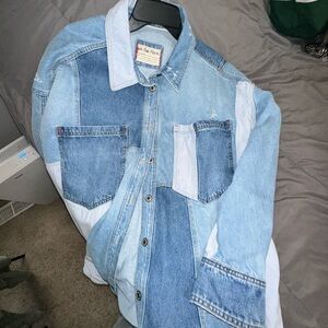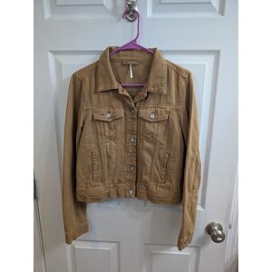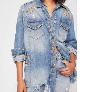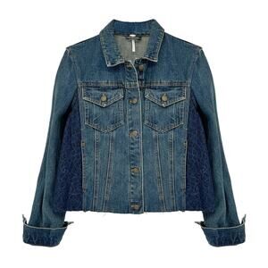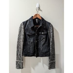 Free people distressed denim jean jacket womens small grunge soft sleeves
