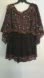 Size small Free People embroidered tunic. Brown colored with blue, yellow and cranberry embroidery. This is actually more of a tank top with the loose hanging sleeves and open back detail, as seen in the video. Elastic waistband. Full lining on the bodice.