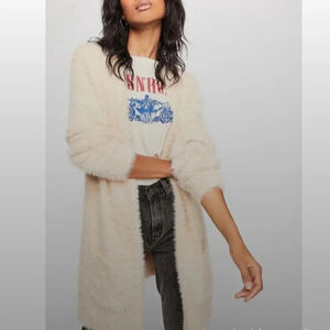 Free people faux fur midi cardigan beige size Xsmall fit to medium