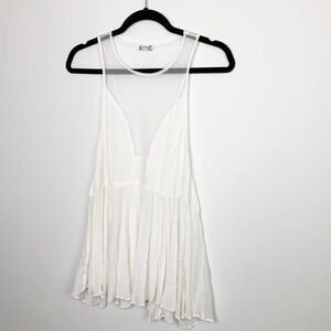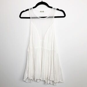 Free people ivory sheer mesh marble tank blouse with peplum hem.