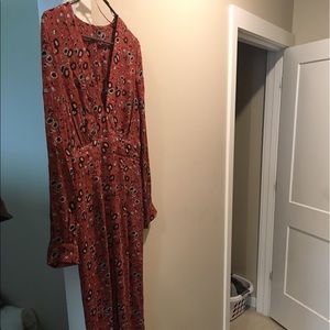 Super cute FREE PEOPLE jump suit, long sleeves, flowy! With a deep front V cut!