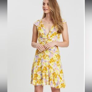 Free people key to your heart floral mini dress size L cute spring and summer dress that gives a great waist. In stores now for $220, I never ended up wearing it Deep V-neck; Fit & flare silhouette Zipper closure at back Cap sleeves Ties below shoulders; ruching at front
