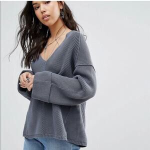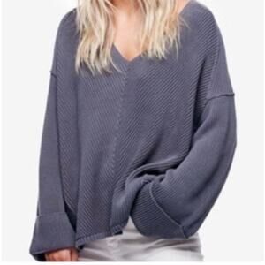 Free people la brea slouchy ribbed knit sweater cuffed sleeves oversized xs