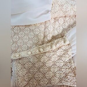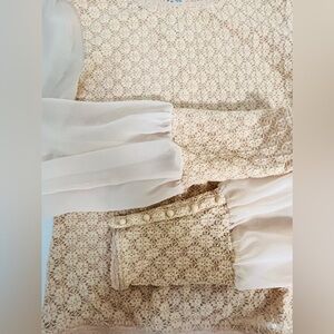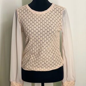 Free people lace sheer long balloon sleeves pink blush feminine shirt medium EUC