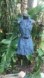 It’s pretty dress has a large standup call her. Also has what looks like a vented cargo flap at the side of the dress. Covered buttons all the way down the denim and fastening those cargo flops. I love covered buttons. Two side pockets. The dress looks like a halter dress Because of the insect shoulders but actually has a full back so you can wear a bra. But in a run button to your modesty and heat tolerance. In excellent condition super cute for summer