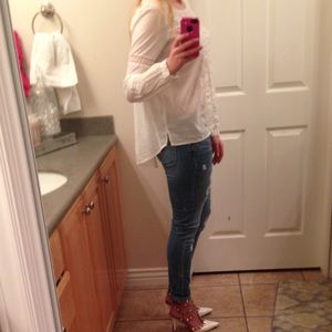 This is perfect for summer , fall, spring. Beading around the shirt. Loose fitting