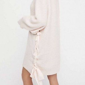 Free people like new lace up light pink sweater