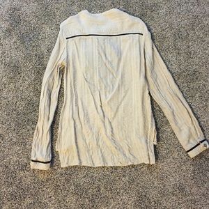 Cream colored long sleeve shirt, half button up that fits very well. Never worn, possible negotiations on price and trade