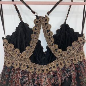 Free people magic lamp gown with paisley print and gold detailing zip up beautiful ruffles.