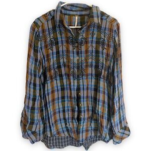 Free people magical plaid western boho floral button up coastal cowgirl shirt M