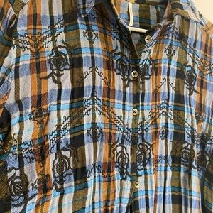Free people magical plaid western boho floral button up flannel shirt medium