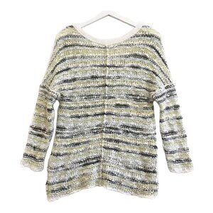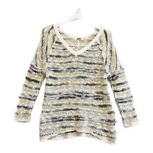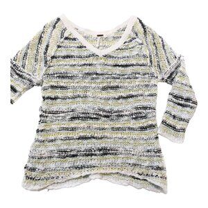 Free people marled Songbird V neck sweater in white/gray/yellow/aqua.size XS