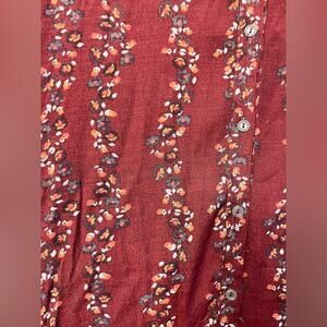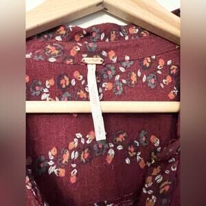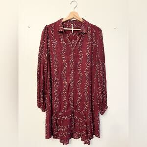Free people casual button front dress. Maroon/wine/burgundy in color with a floral print throughout. Long sleeve. Great color for day wear or holiday parties. Easy to wear along or paired with tights and a cardigan. No flaws to note. Women’s small. Approx 34 inches in length, 20 inches pit to pit laying flat.