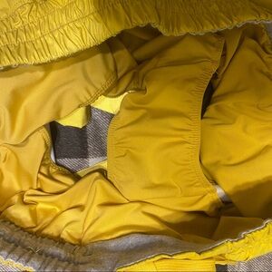 The material naturally has some slightly darker spots/ slight variation in color on it throughout the entirety of the shorts. (I think because of the nature of the reflective material 🤷🏻♀️) These are brand new and in perfect condition