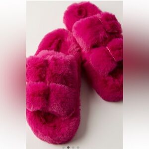 So soft amazing pink faux furry slides in excellent condition worn one time. They have rubber soles and can be worn in or outside. Purchased from free people.They care sold out. No size tag but they are an 8