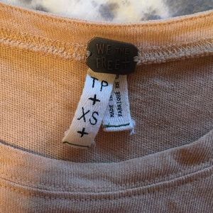 Tan colored shirt with grey cut-off shoulder sleeves, lose flowy