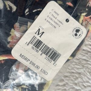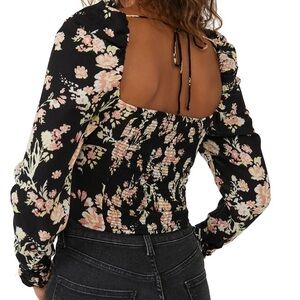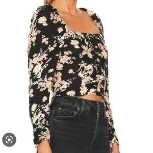 Free people nwt Hilary Printed top Black combo floral long sleeve blouse