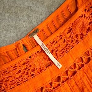 Free people orange tank size S Eyelet lace 100% cotton RN# 66170