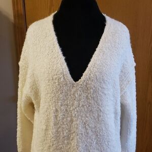 V neck over sized bulky style alpaca blend sweater in off white by free people excellent condition oversized size xs