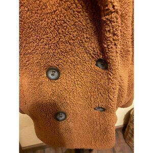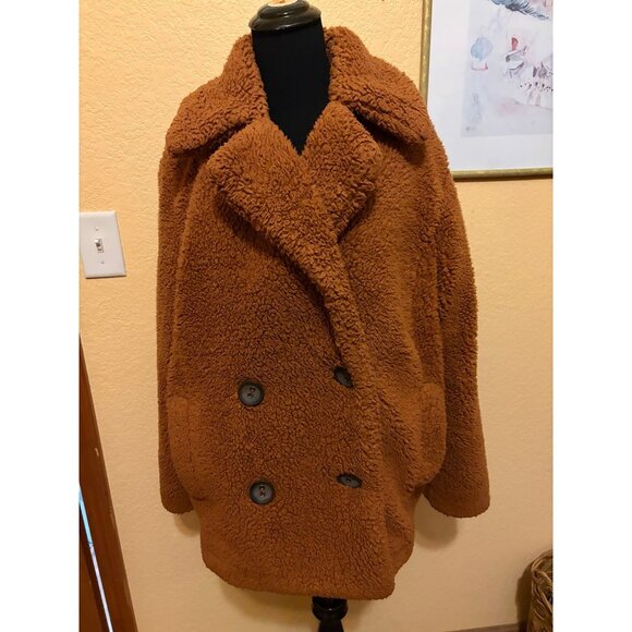 Free people oversized puffy coat. Brown color. Double breasted. Two side pockets. Fully lining. Chest: 23”, length: 29”, sleeve length: 30.5”, good condition size S