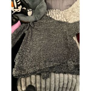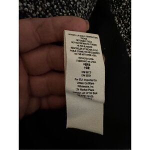 NWT slouchy wool blend belted moto jacket from Free People. Oversized fit. Black and white boucle style shell with black lining. Metal buttons, adjustable belt buttons loops around the wrist for decoration, double breasted button closure, and pockets! Factory fault of small spot of discoloration as pictured - I believe they tried to burn loose ends because it's also stiff. I have not tried removing the discoloration but it's fairly unnoticeable. Extra button still included.