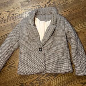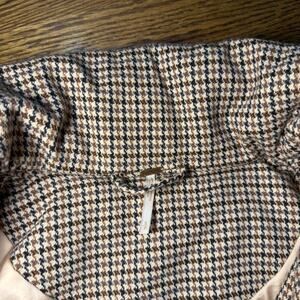 Free people quilted Brown and white plaid puffer jacket with button closure, pockets, and a relaxed fit size small houndstooth coat