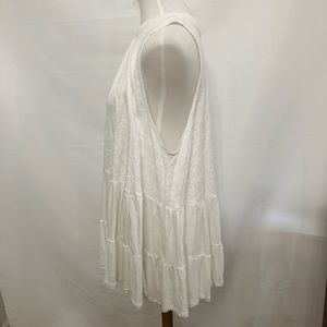 Crew neck - Sleeveless - Tiered hem - Back cutout with tie closures - Approx. 30" length