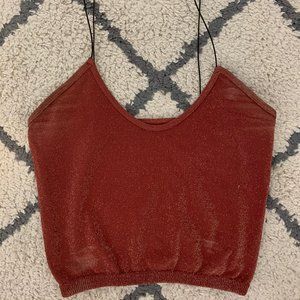 Seamless Brami in metallic maroon. It is a bit stretched out on the armpit but can't really be seen when it's worn.