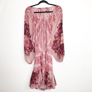 Free people seven wonders pink floral balloon sleeve ruffle hem mini dress