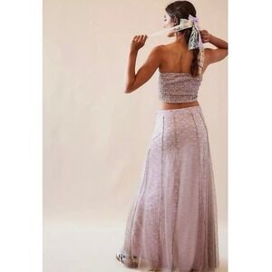 Turn heads in this so stunning set featured in a lovely lace-adorned fabrication with cropped corset-inspired top and coordinating mid-rise maxi skirt for the perfect done-in-one look for absolutely any occasion.
