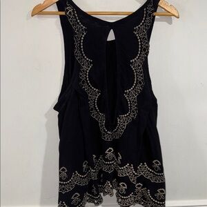 Free people shirt flowy tank top embroidery cutout medium boho hippie