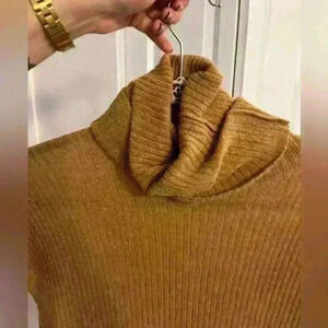 Fits long like a tunic with slits on sides. Cowl neck, has holes for possible belt to be added