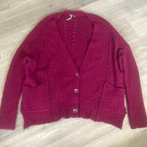 Free people size small oversized Cozy Burgundy Knit Cardigan Sweater