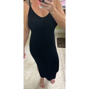 Free people small ribbed bodycon sweater dress black midi with side slit