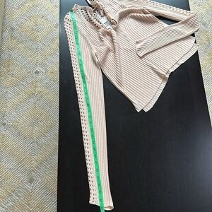 New with tags. Unique open weave on front, back, and down sleeves. Peachy pink shade. SZ S. Could possibly fit a medium as well. Please confirm measurements approximate laying flat in pictures as Poshmark does not honor returns for fit issues. Please see all 9 photos and one video provided. Thank you for looking.