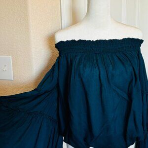 Free people- teal/blue off the shoulder/strapless crop ruffle sleeves
