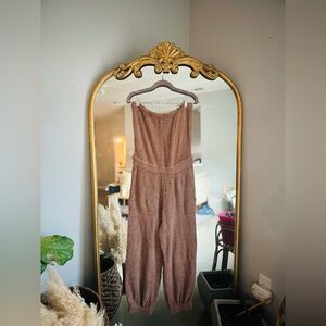 Free people terry cloth strapless tan Claire jumpsuit nwot large
