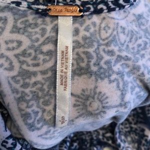 Floral dark blue and light pink print. Very soft material. Worn maybe once