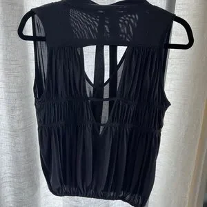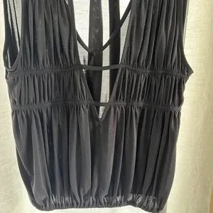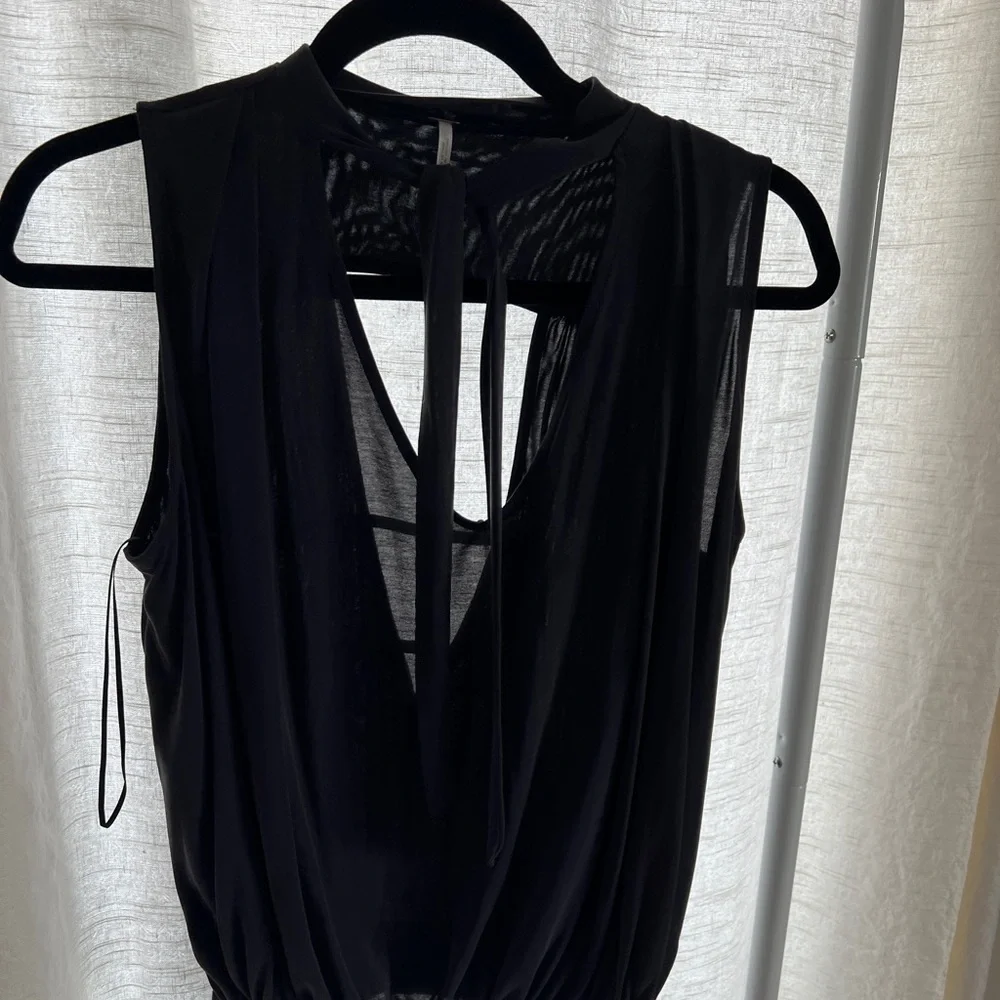 Gray sleeveless free people tank with detailing at the bottom and tie on neck size small