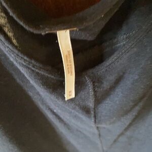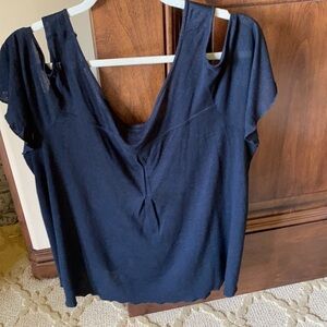 Black top with open shoulder sleeves. One tiny hole at bottom of the top . No stains . Non smoking home .