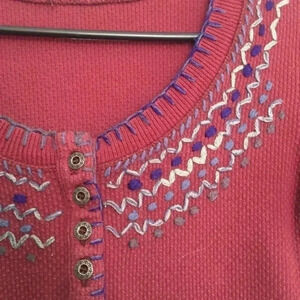free People “We the Free” thermal top with embroidery at the chest. Classic free people thermal in beautiful maroon purple color. The size tag has been cut out but is XS by we the free. Excellent used condition