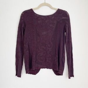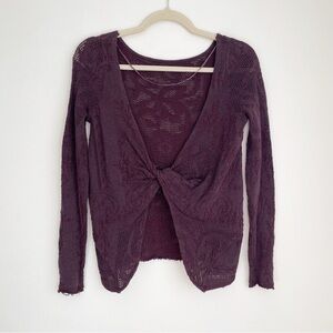 Free people twist sweater open back sheer dark floral long sleeve knit purple S