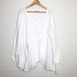 Free people with a free white mixed media, V-neck oversized tunic top With raw hem detailing.