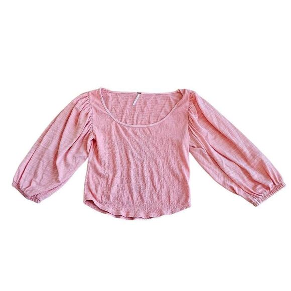 Free people womens Sz L coral Day lily puff Sleeves Top