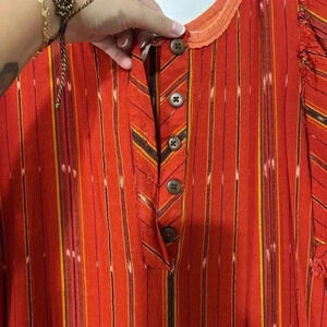 Free people women’s orange, red short sleeve BoHo maxi dress
