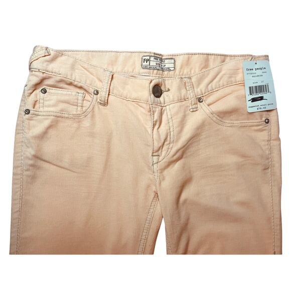 Free people women’s peach corduroy, skinny pants, size 27 NWT