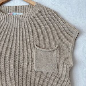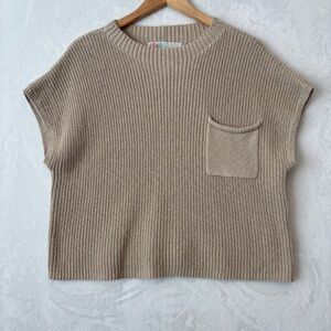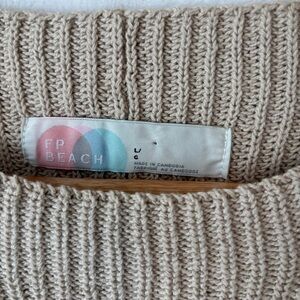 Free people womens tan casual freya tan knit short sleeve sweater size large
